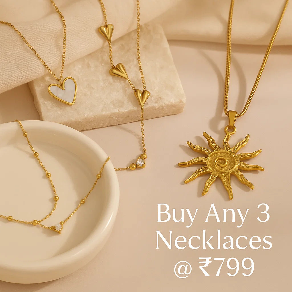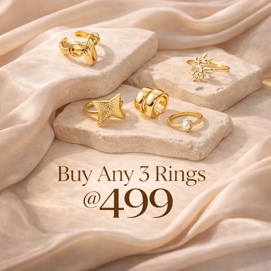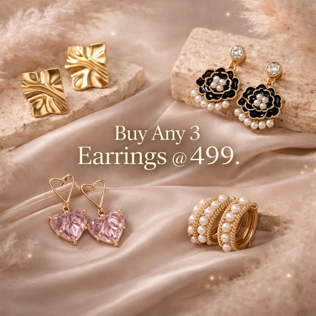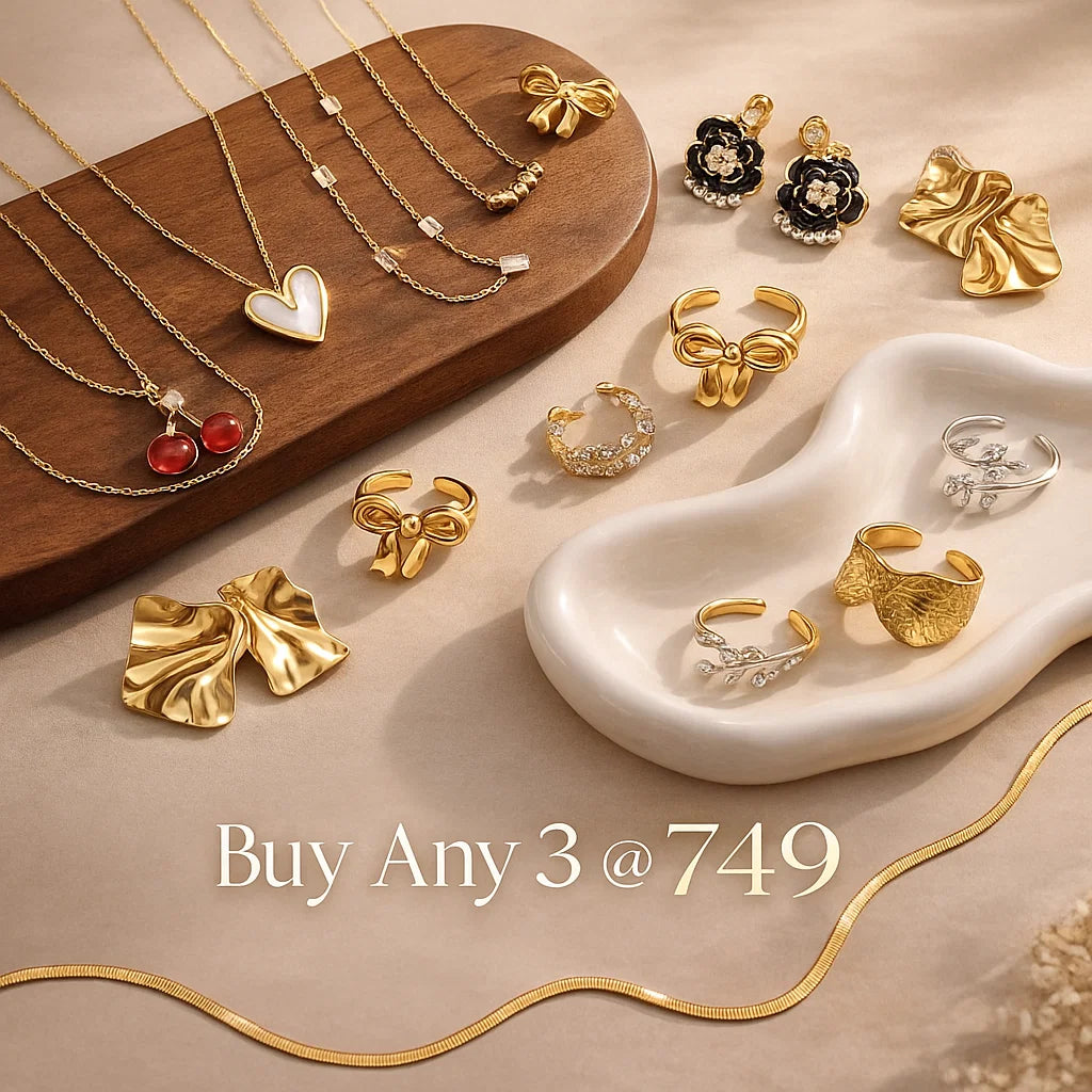 Pick any 3 earrings, rings, or necklaces for just ₹749 — Steal Deal !