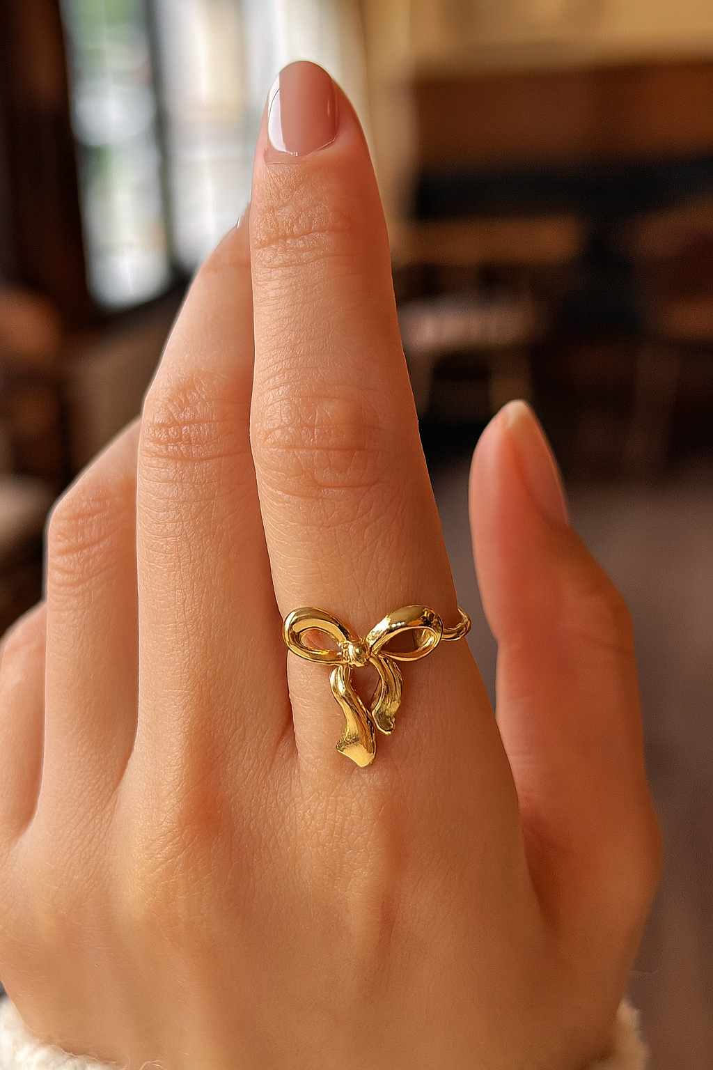 Elevate your everyday elegance with this exquisite adjustable ring, where refined craftsmanship meets versatile design. The delicate golden ribbon motif wraps gracefully around your finger, creating a sophisticated silhouette that complements any occasion. Its adjustable fit ensures a perfect, comfortable wear for all hand sizes, making it an ideal choice for those who value both style and practicality. Whether layered with other pieces or worn as a standalone statement, this ring delivers timeless beauty with contemporary appeal.