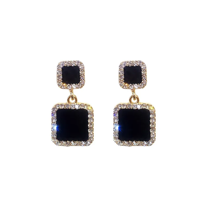 Elevate your evening aesthetic with these sophisticated drop earrings, where crystalline edges catch light with precision and grace. The midnight-toned design offers versatile elegance, seamlessly transitioning from formal occasions to refined everyday wear. Each piece showcases meticulous craftsmanship, with carefully faceted crystal accents that create dimensional sparkle without overwhelming the silhouette. The balanced drop length flatters most face shapes while maintaining an understated luxury appeal. Perfect for those who appreciate jewelry that speaks through subtle brilliance rather than bold statements.